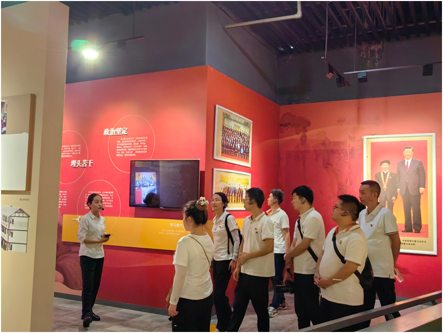下午来到大发渠陈列馆,在讲解员的引导下,大家认真观看一张张珍贵的照片、一件件陈旧的工具、一段段感人的视频,聆听黄大发老支书为改变家乡缺水困境,历时36年带领村民在悬崖峭壁上硬生生凿出一条“生命渠”“致富渠”的故事。每一件展品背后都凝聚着当年修渠的艰辛与不易,生动展现了黄大发老支书“当代愚公”的坚韧品质和共产党员一心为民的初心使命,党员们深受触动。